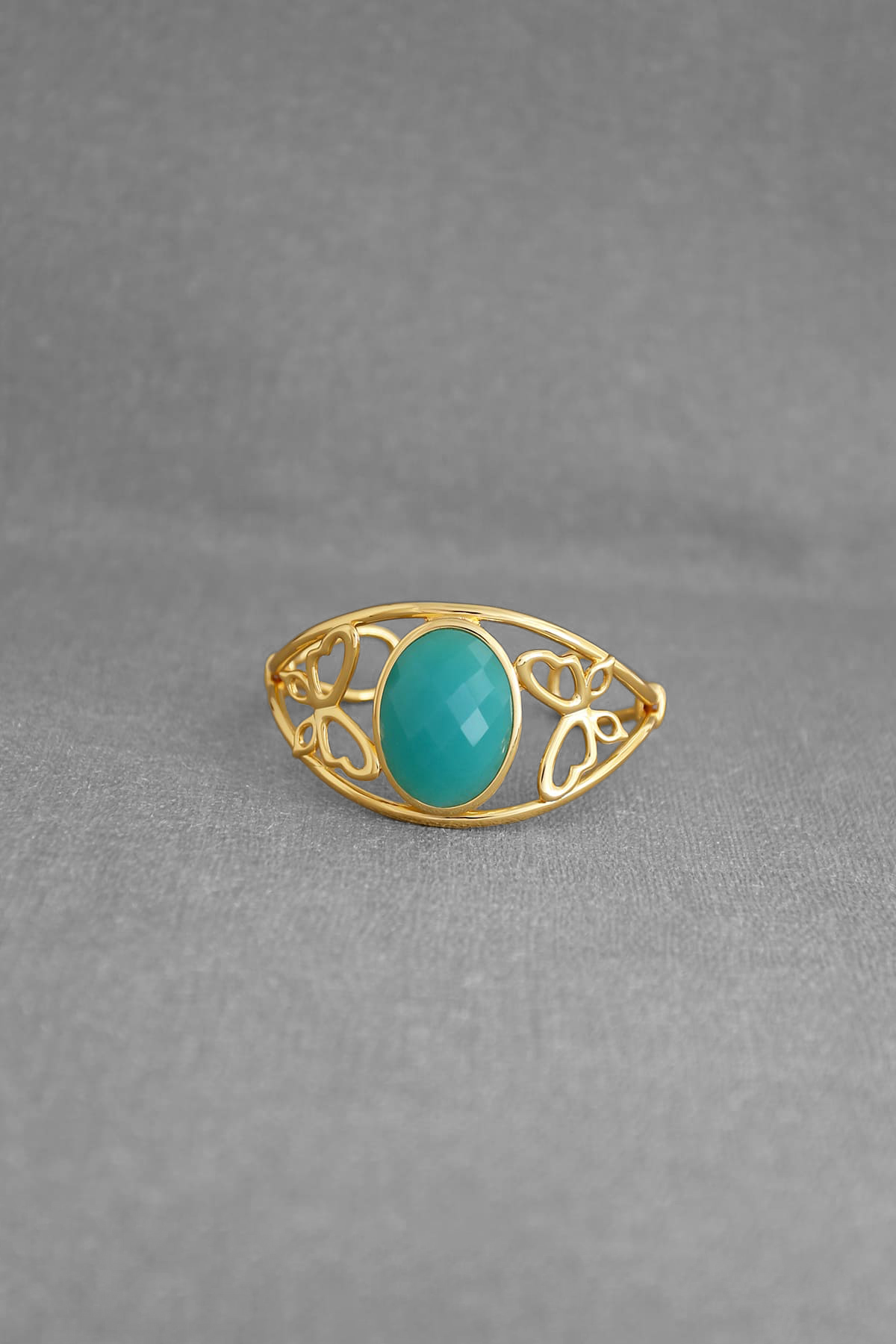 Description : Filigree metal bangle cuff, with a large turquoise green glass gem