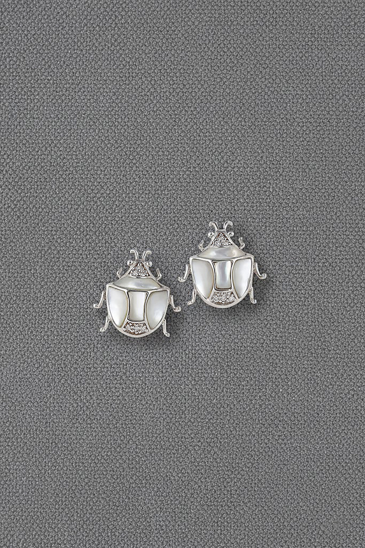 Bug designed earring post in 925 sterling silver, the cute and delicated pair inlaid by genuine stone.