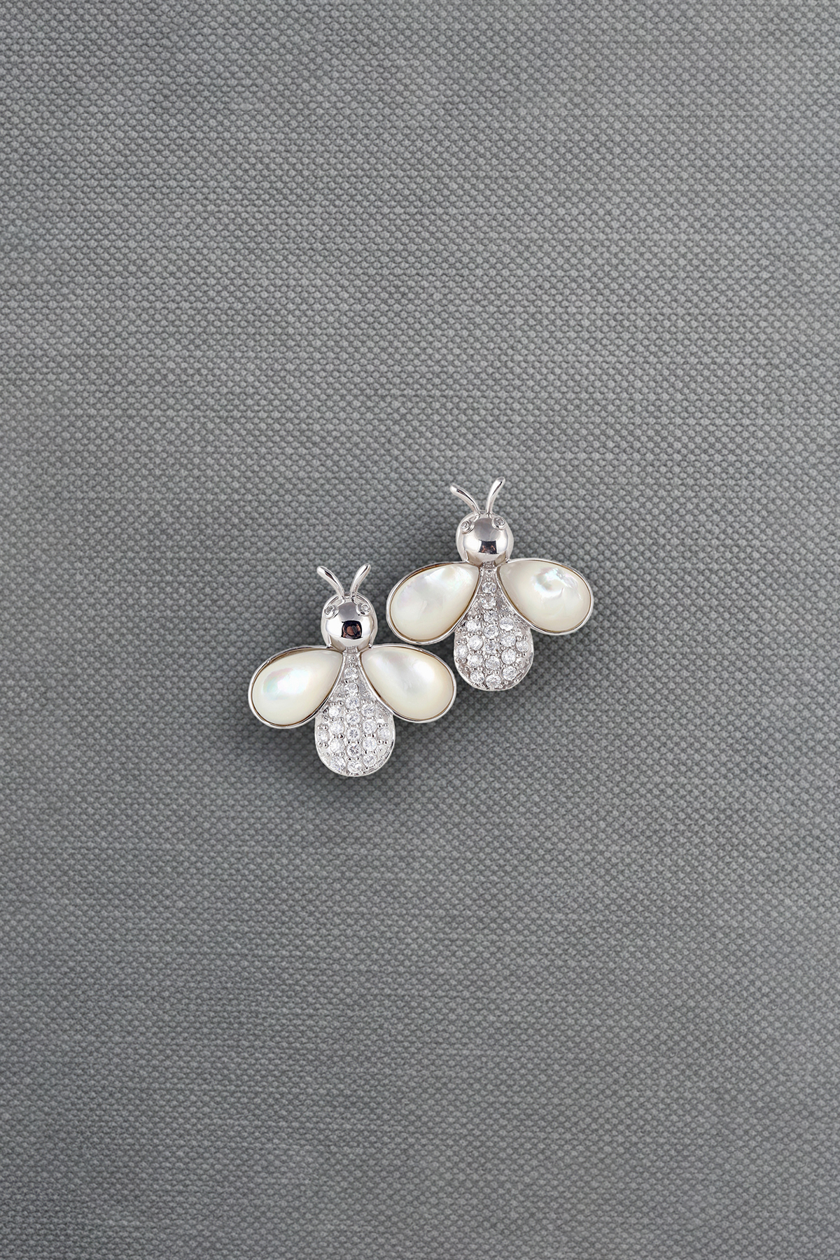 Exquisitely big garden animal-designed earring in sterling silver, hand made pair with different genuine stones inlaid.