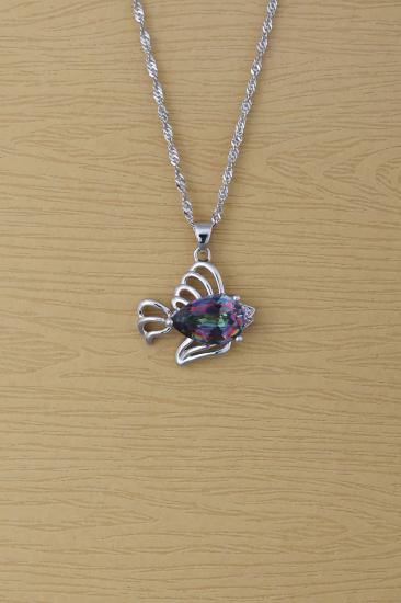 Gorgeous rainbow lights mystic topaz Dangled Earring in 925 sterling silver, decorated by clear cubic zirconias, with main stone sized 10x10 mm cushion. This multi-color topaz pair is the best gift for women wearing at any occasions. The matched pendant RT-7802. Item size : 22x13 mm.