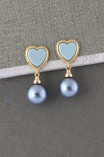 Stone sizes : Plain-cut turquoise 12 mm heart+grey shell pearl beads 14 mm