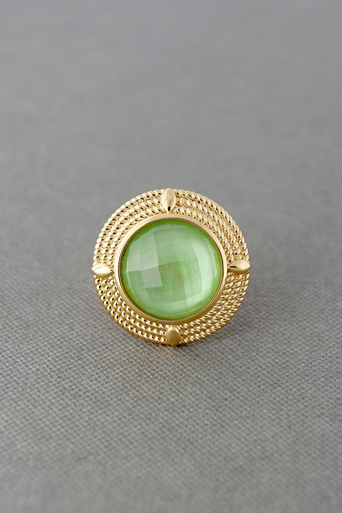 Description : A triple rope-shaped circle ring, was embellished with the shimmering cabochon