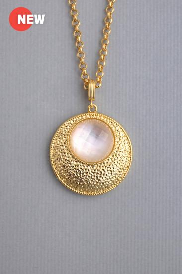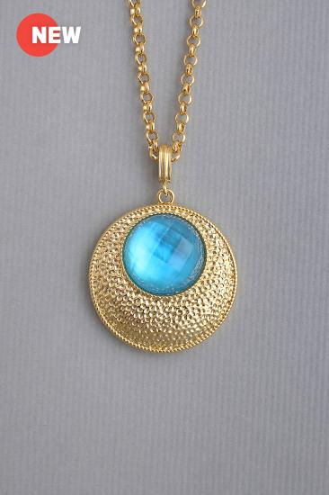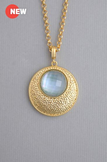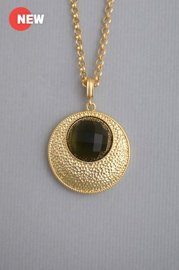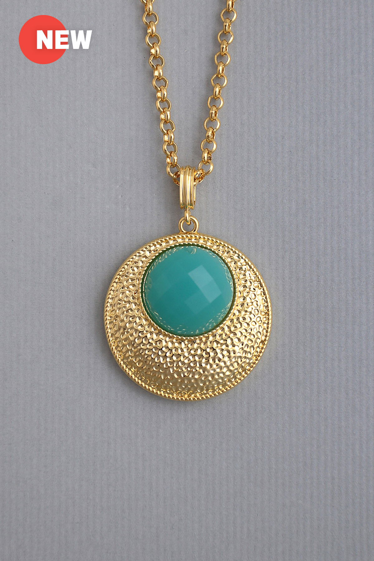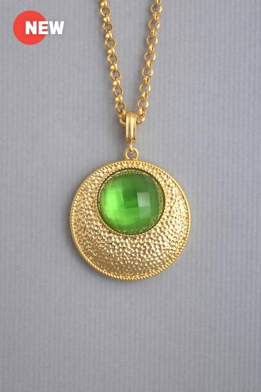 Description : Vintage brass hammered domed circle pendant embedded with a centerpiece