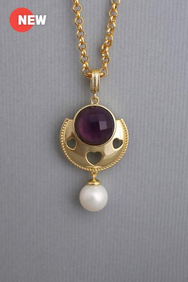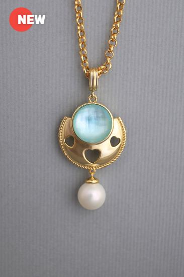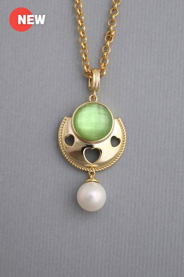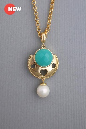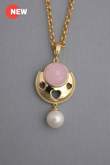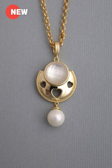 Description : Thick 18K yellow goldplated metal pendant chain with a white shell pearl bead