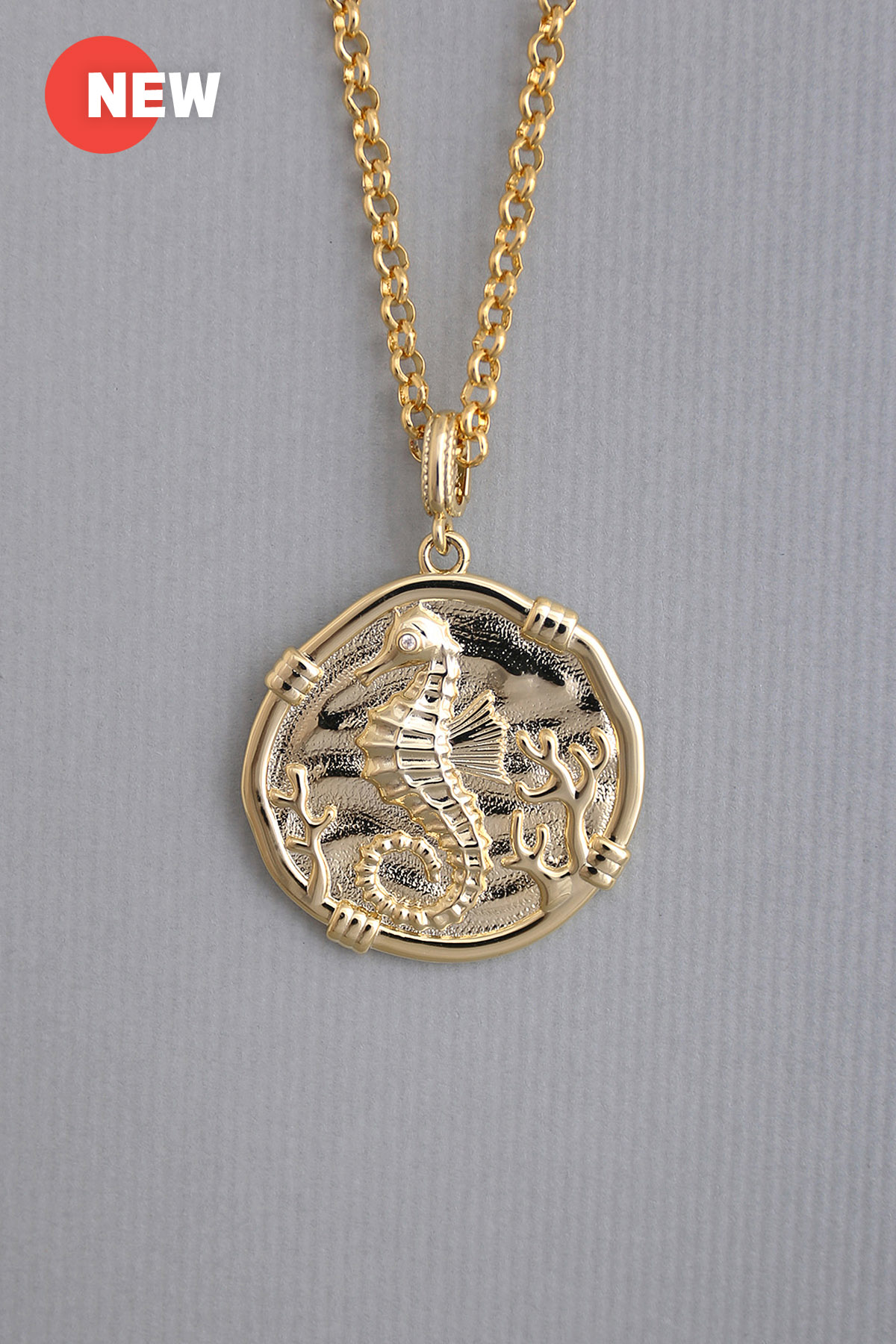 Description : Chain necklace with 'Seahorse-rose flower' two-side available coin drop.
