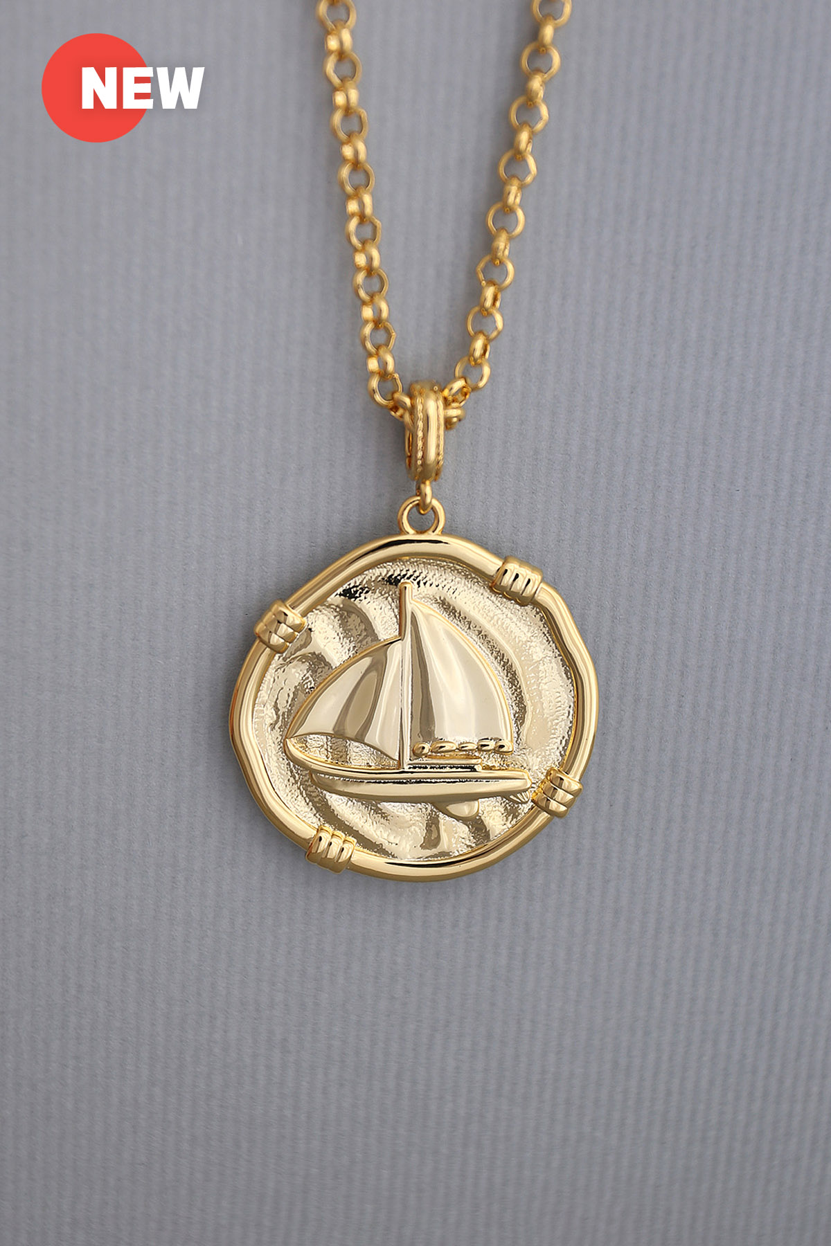 Description : 'Sail boat-rose flower' chunky texture two-side available coin drop,
