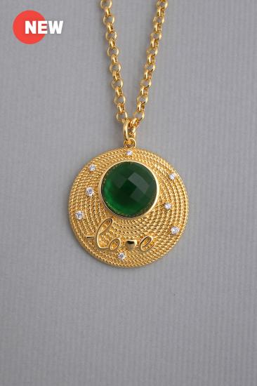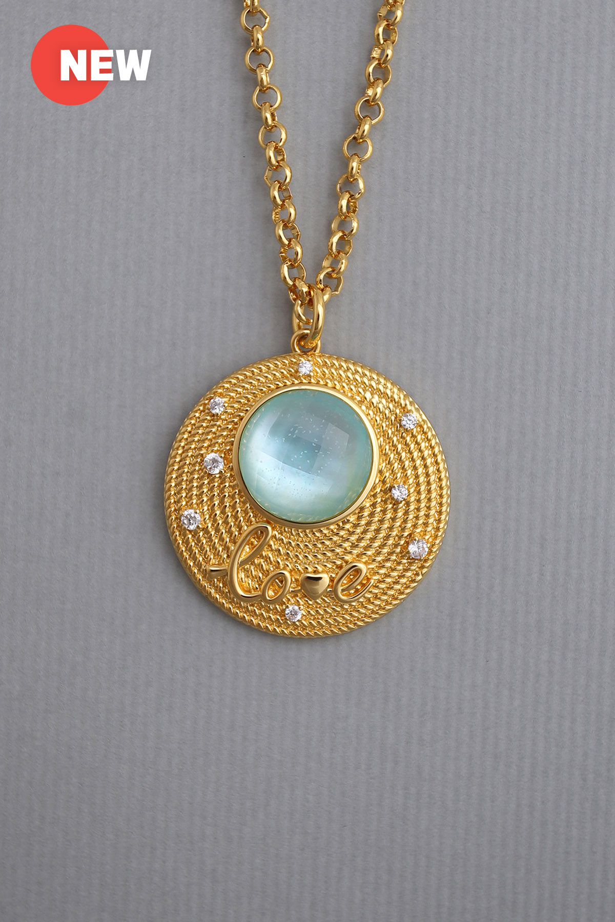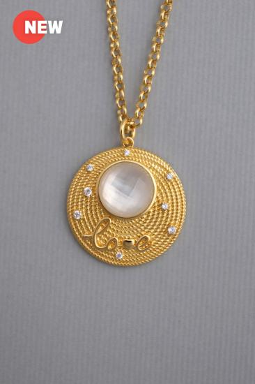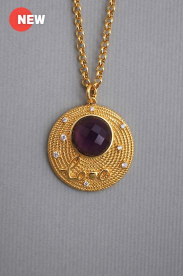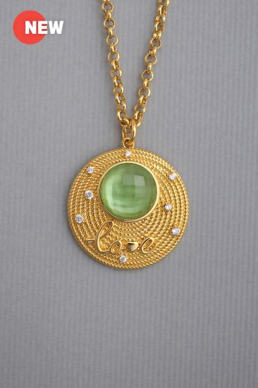 Description : A rope-textured spiral large circle pendant embedded with a faceted yellow gold