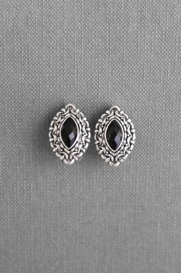 Description : Antique silver-made oxidized stud earrings, encrusted with faceted