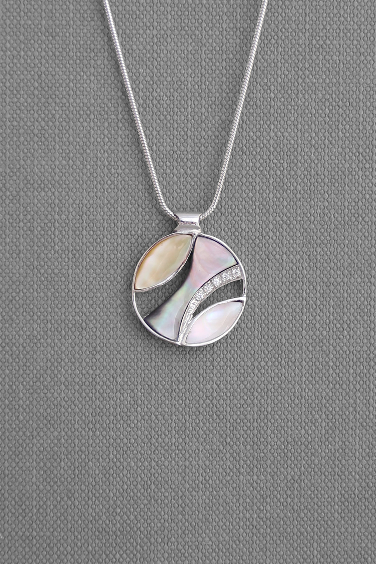 Description : Hand-made curve-shaped silver pendant inlaid by genuine colored