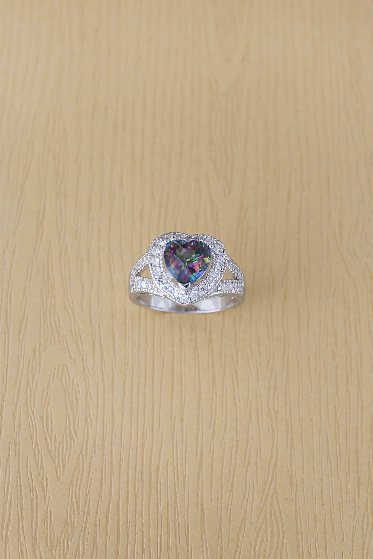 Main stone : 8x8mm heart rainbow topaz