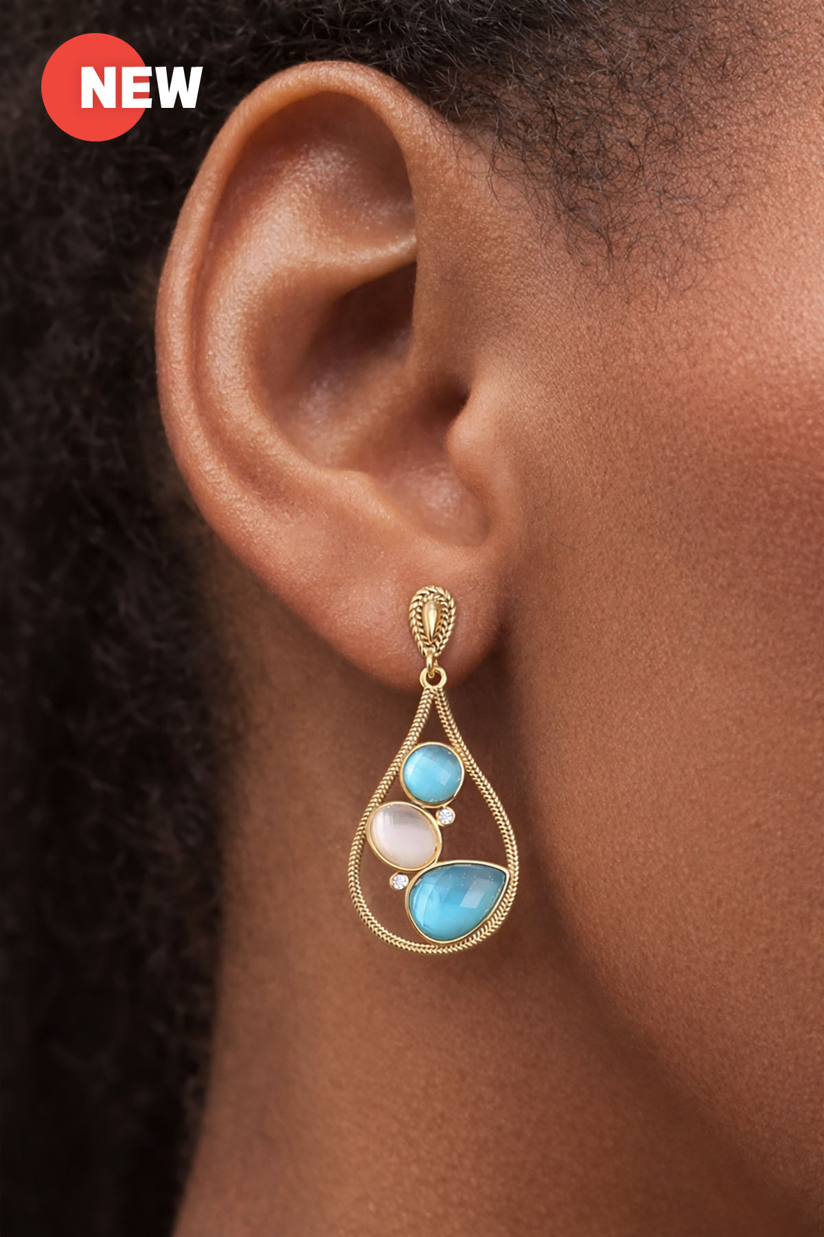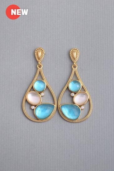 Description : An open water drop dangle earrings, ocean-themed design, with faceted