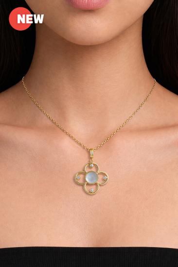 Material : Quatrefoils open pendant, metal in 18K yellow gold plating, anti-tarnished finish,