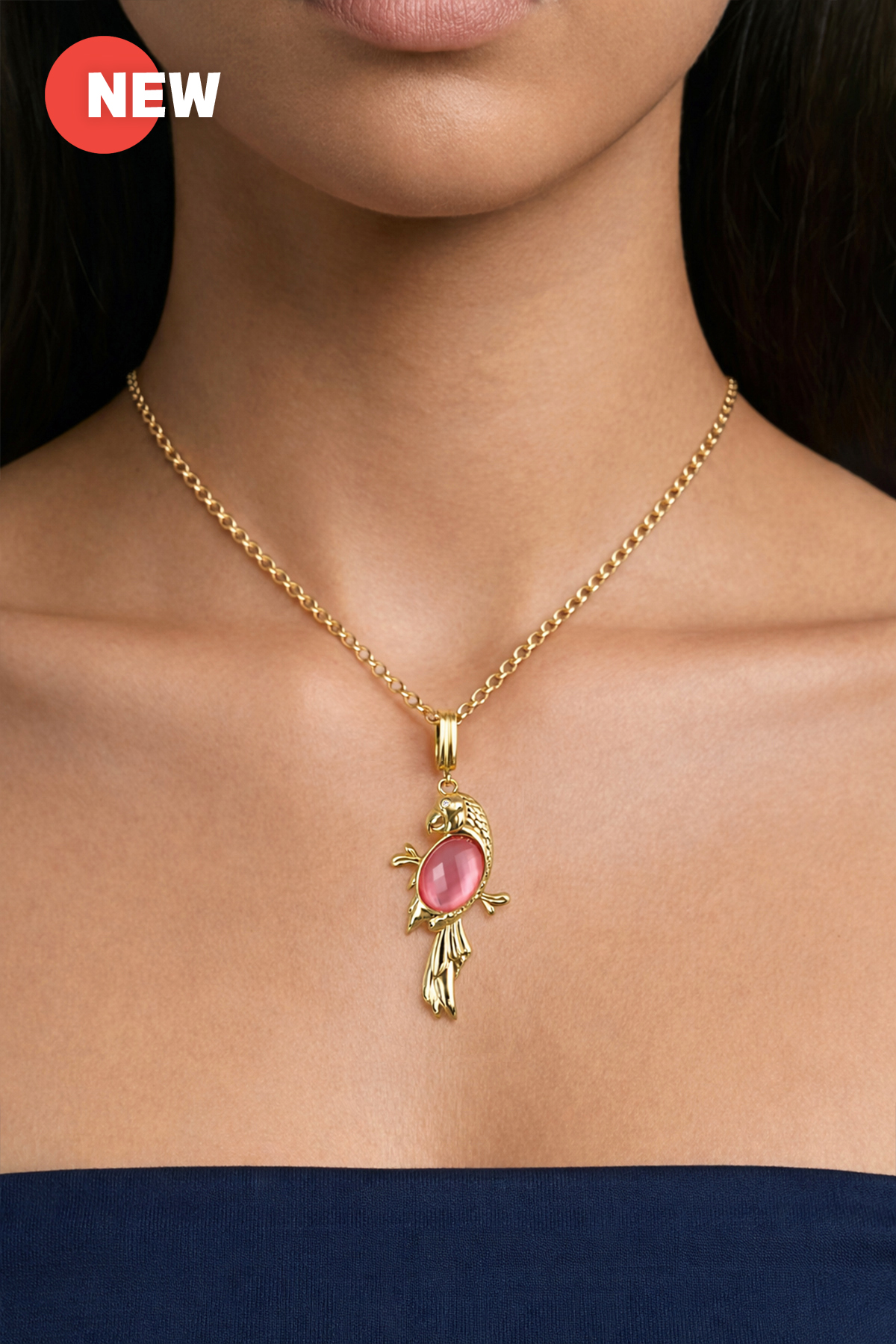 Material : Lovely parrot pendant, metal in 18K yellow gold plating, anti-tarnished finish,