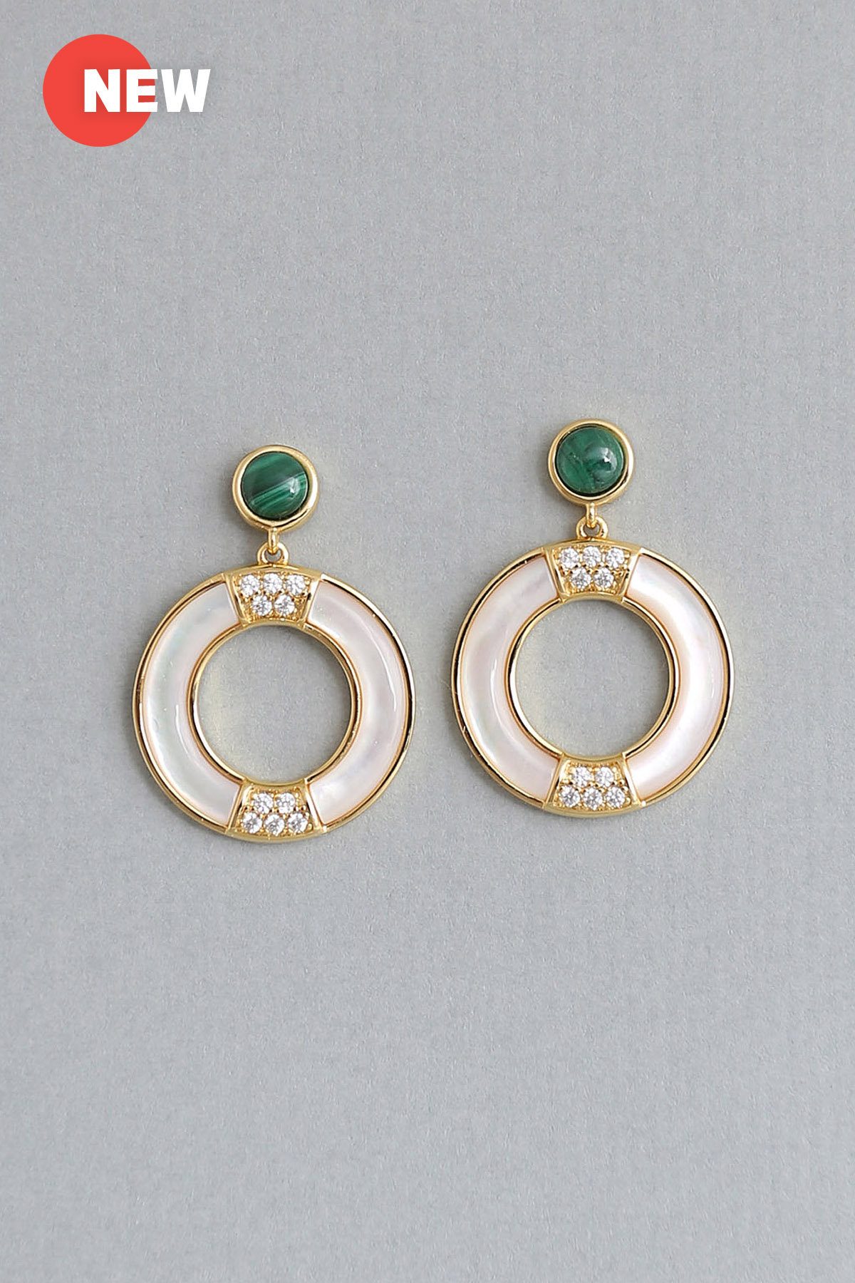 Stone color available : Inlaid genuine white mop shell+stone malachite 5 mm round