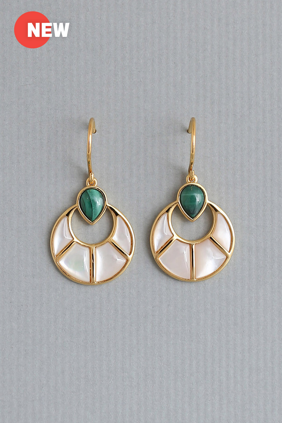 Stone color available : Inlaid genuine white mop shell+stone malachite 5x7 mm pear