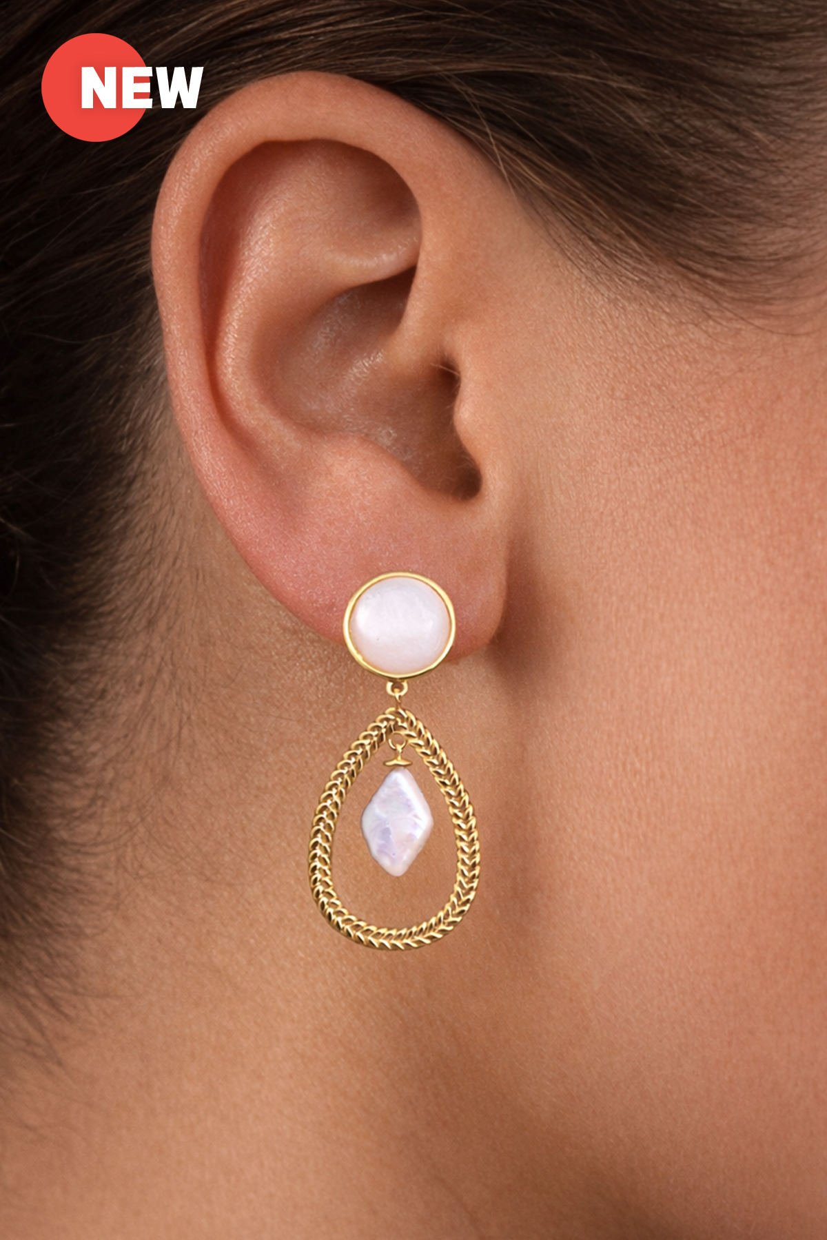 Material : Big teardrop dangle earrings, metal, anti-tarnished, 18K yellow gold plated