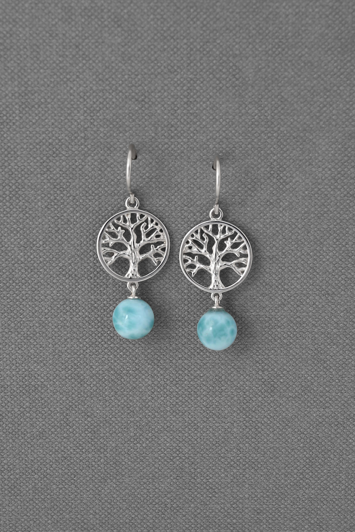 Larimar "Tree of Life" silver earrings with bead drops of genuine AAA++grade stone 8mmx2, french wire hooks. Item size 15x40 mm.