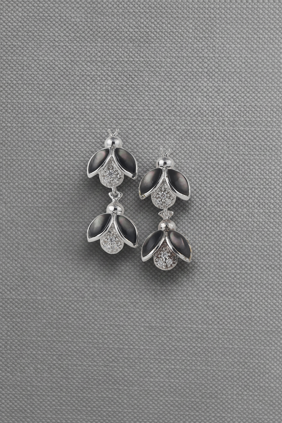 Garden bug designed earring made from sterling silver, dangle pair inlaid by genuine stone.