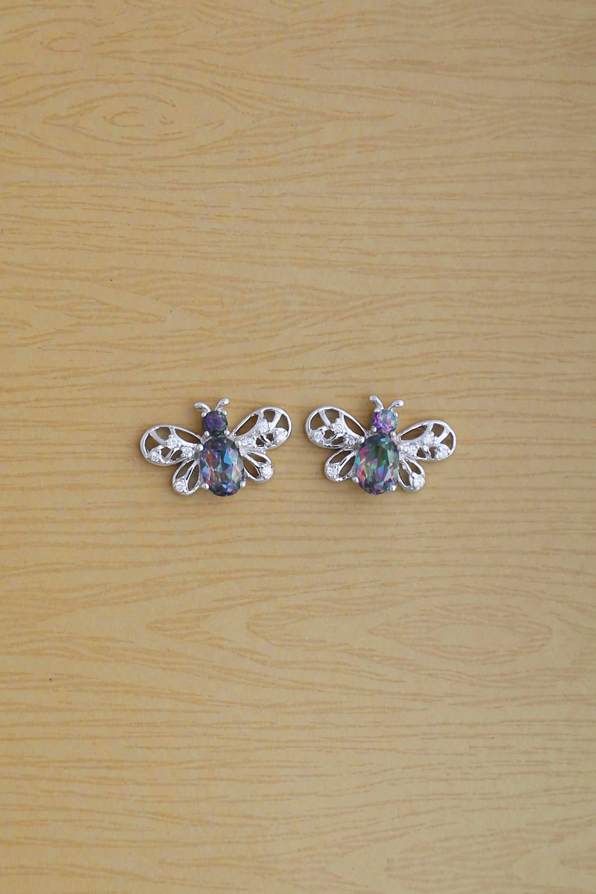 Designed honey bee Rainbow Topaz pierced stud earring in 925 silver, main stones sized 5x7m oval / 4mm round with outframed clear zircons to enrich the glamour of this cute earring pair. Item size : 18x12 mm.