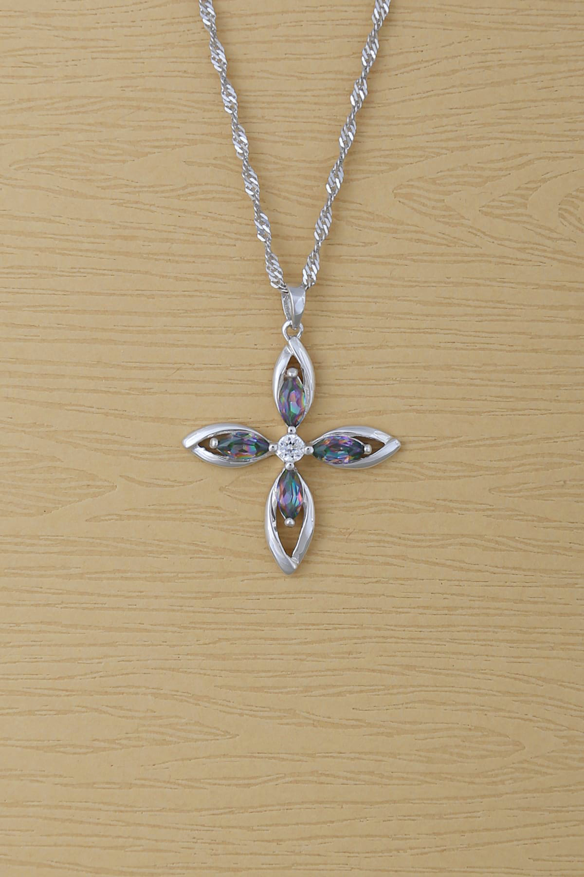 Glory be to God-- with multi-color faceted topazs silver pendant encased on a cross design prong setting, this jewelry piece draws a big impact of elegance. It will be the best for friends and family. Stone size : 3x6mmx4 marquise. Item size: 24x32 mm.