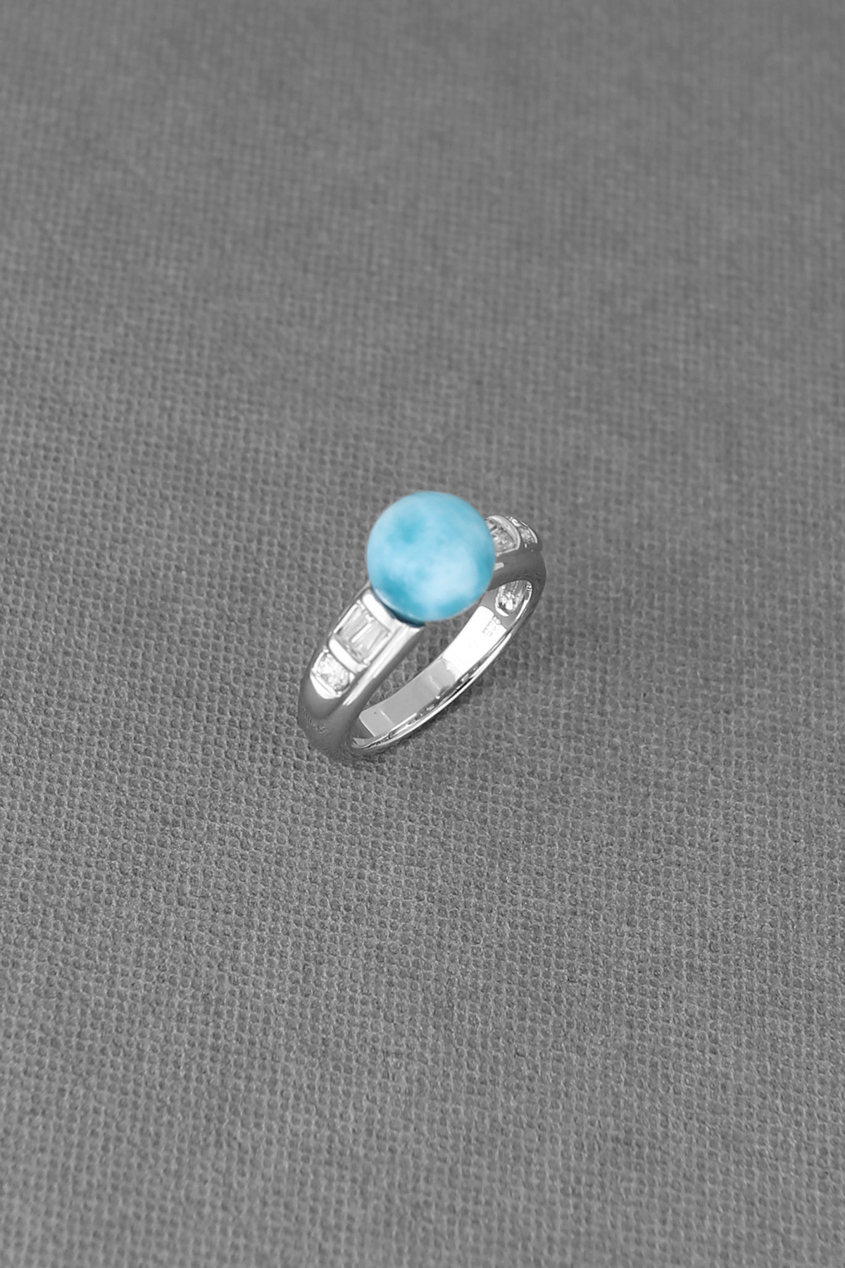Larimar bead's ring made from sterling silver with clear cz-bezeled setting shows your differently attractive temperament while wearing it. Bead's size 9 mm diameter.