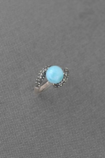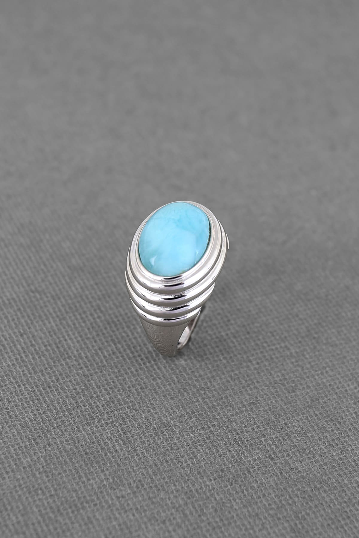 Larimar Silver Ring -- high polished piece in rhodium plated, genuine stone larimar 10x14mm oval.