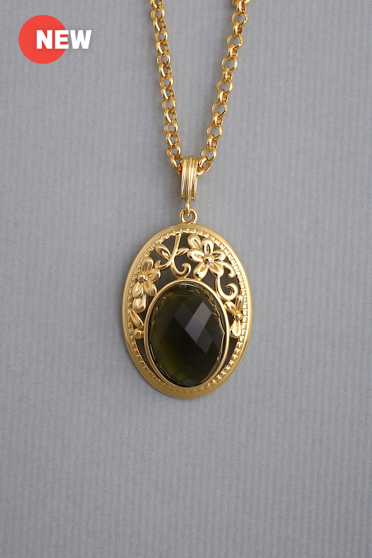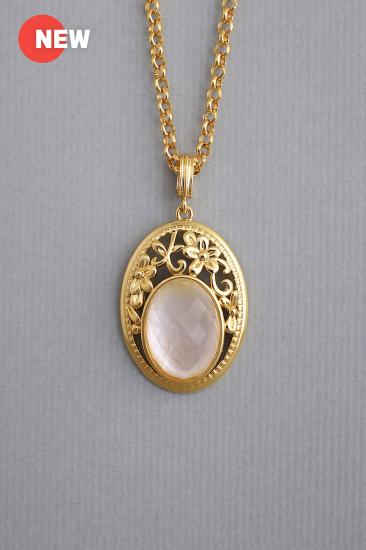 Description : Filigree oval pendant with delicate flower metal work brings glamour,