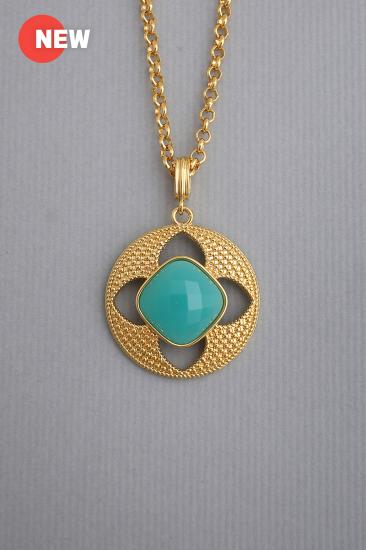 glass gemstone dangles from a statement well-plated chain creates this pendant