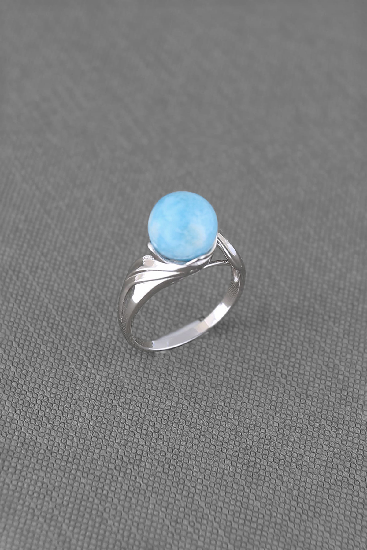 Larimar bead ring-- made from 925 sterling silver with rhodium finish, genuine larimar bead 9-9.5mm.