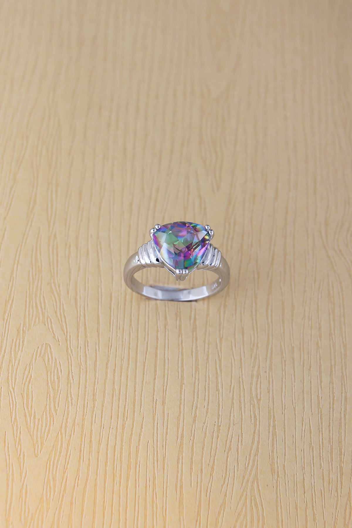 Main stone : 10x10mm Trillion curved rainbow topaz