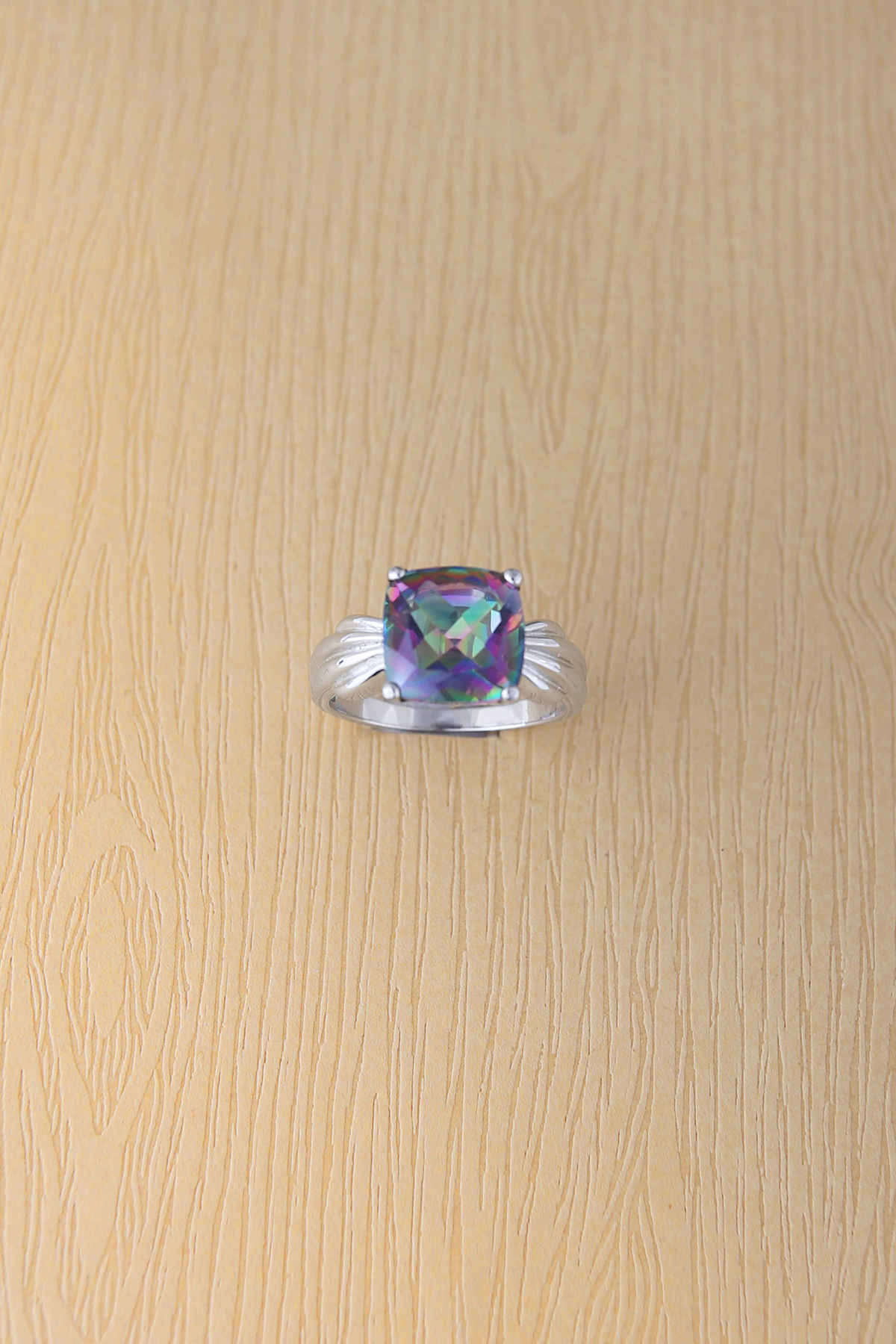 Main stone : 10x10mm cushion square rainbow topaz