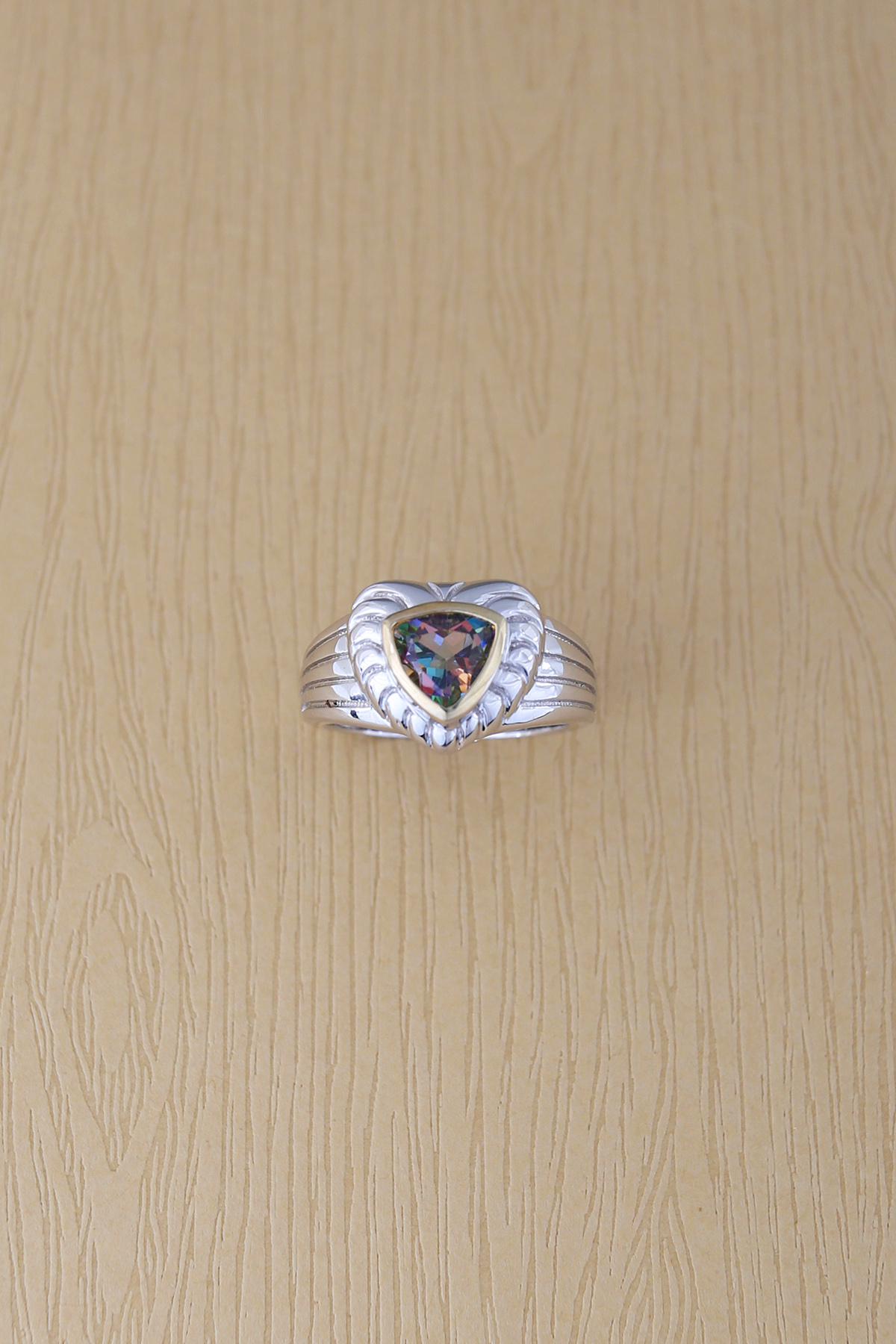 Main stone : 7x7mm heart rainbow topaz