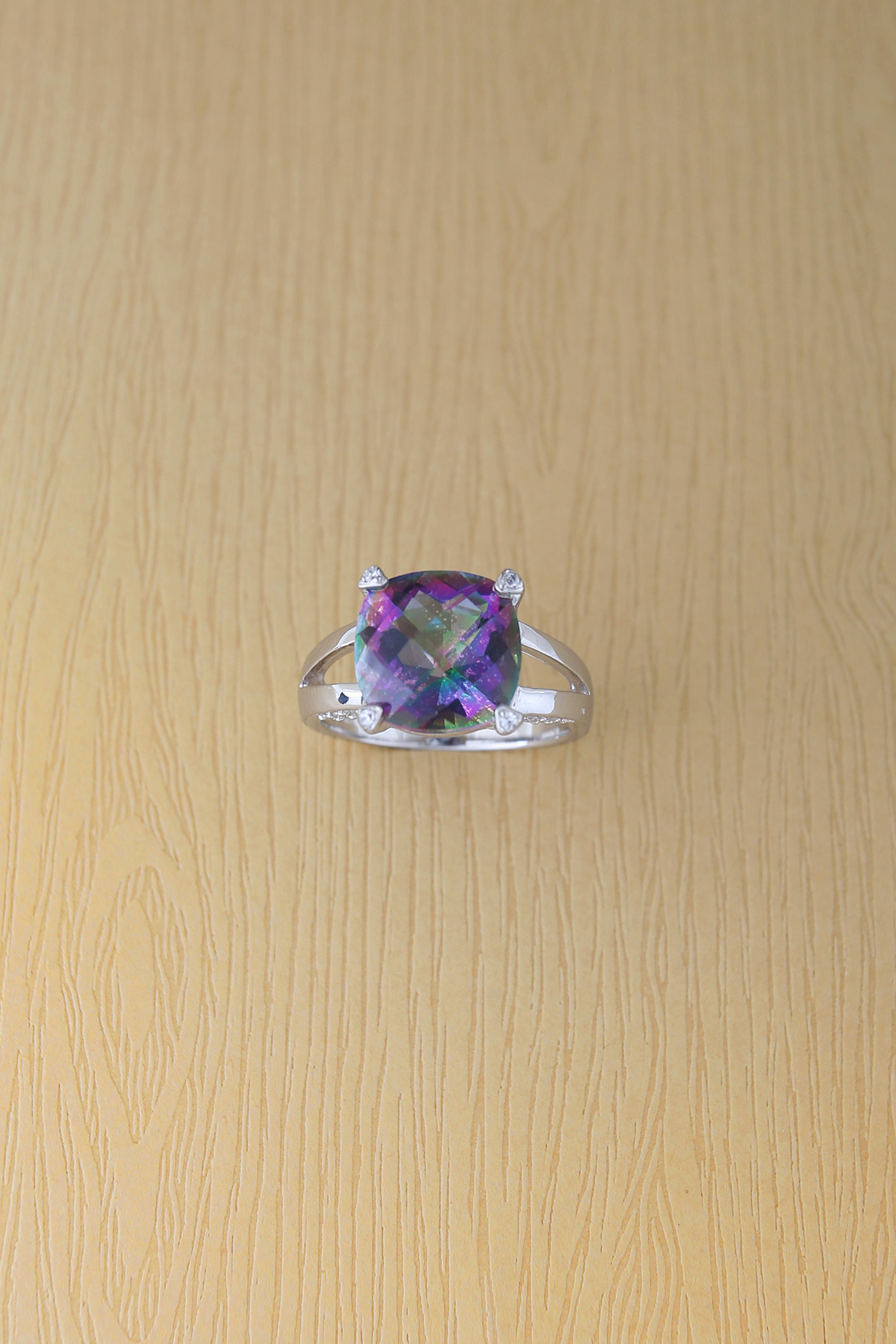 Main stone : 12x12mm cushion square rainbow topaz
