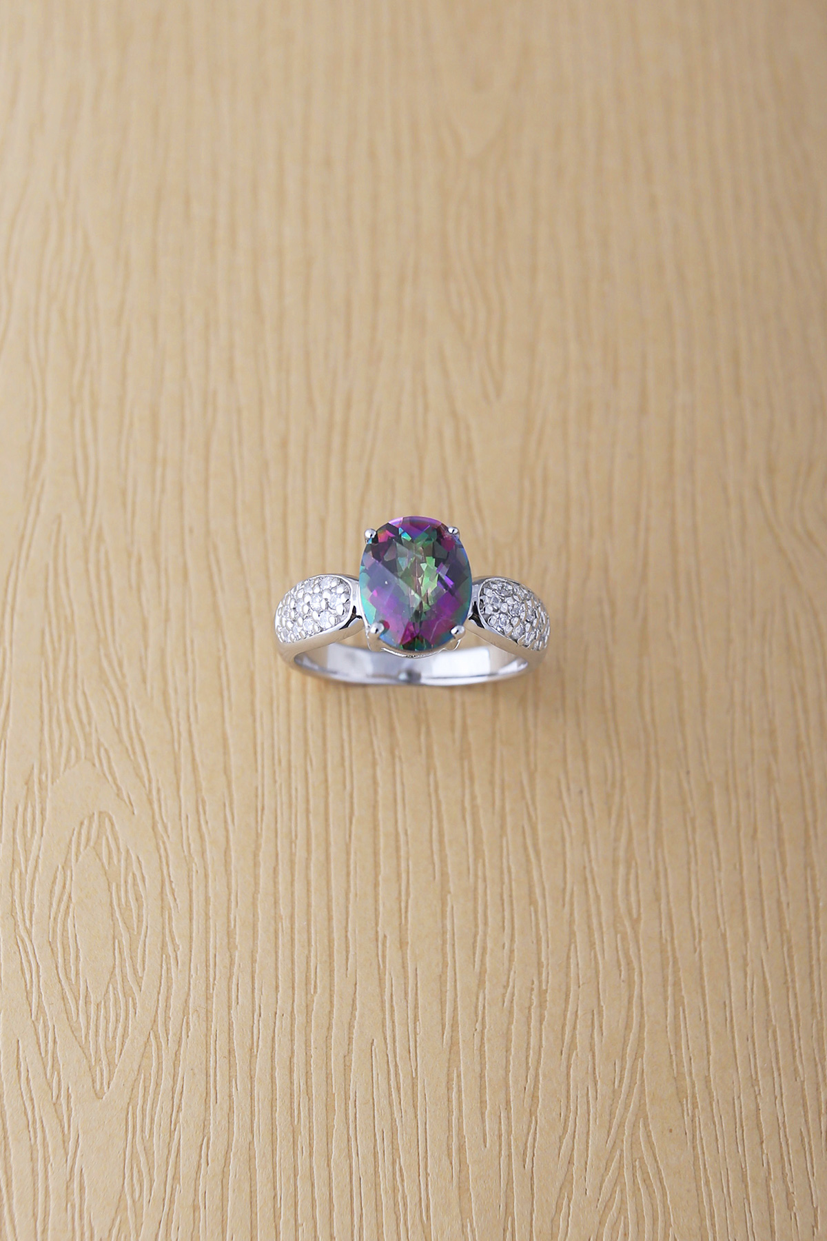 Main stone : 8x10mm oval rainbow topaz