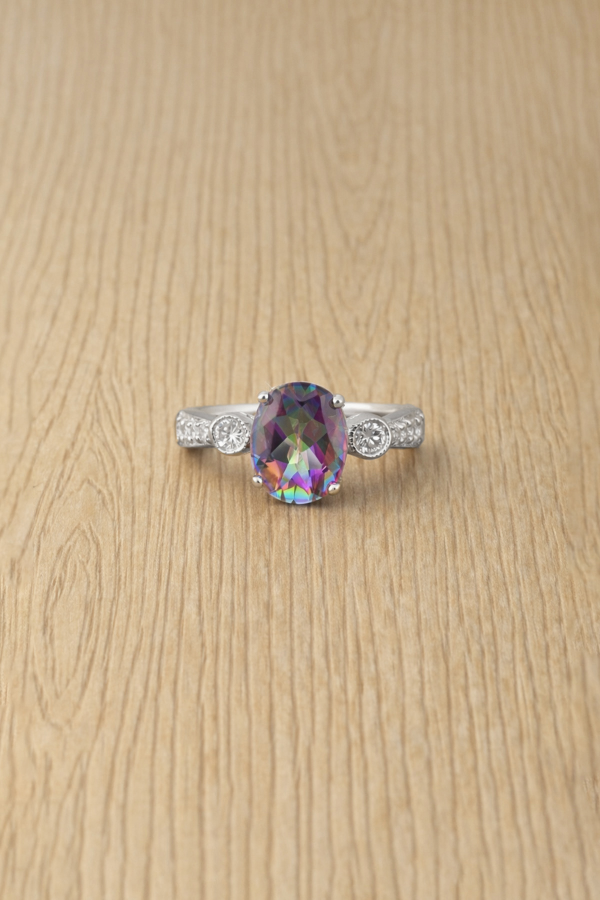 Main stone : 8x10mm oval rainbow topaz