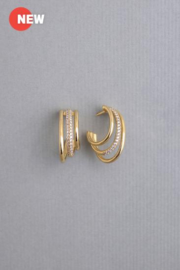 Description : Wire stud earring having the drop of C-shape cz-decorated