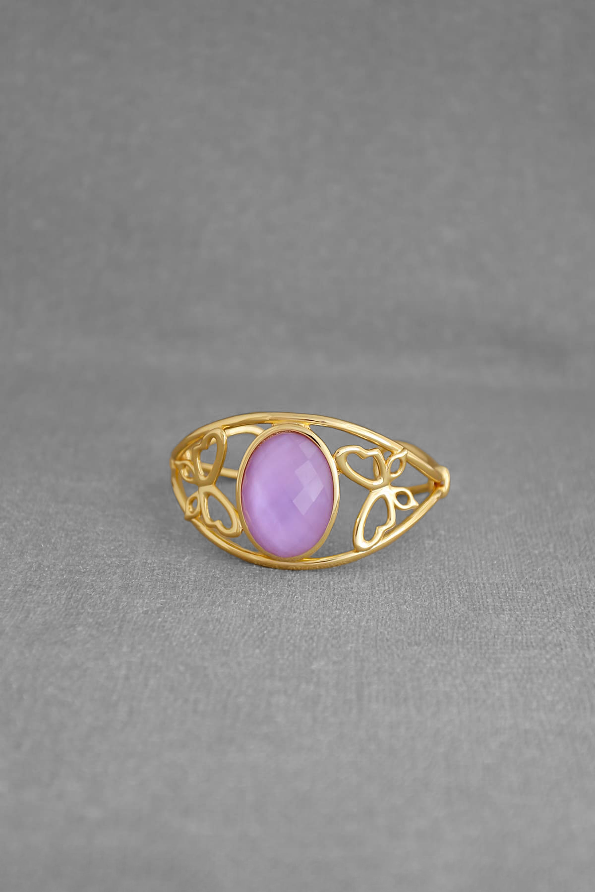 Description : Filigree metal bangle cuff, with a large royal violet glass gem