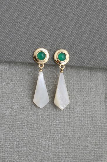 Below it, a slender sword-shaped mother of pearl gently dangles, adding