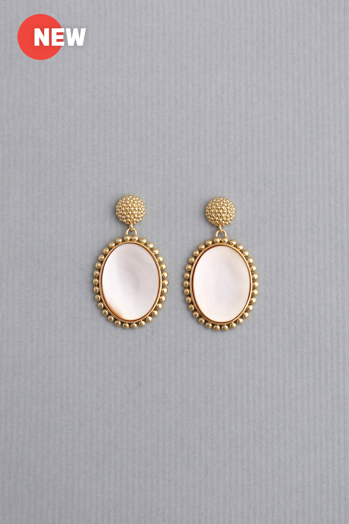 Main stones and sizes : Inlaid white mop, 15x20 mm oval