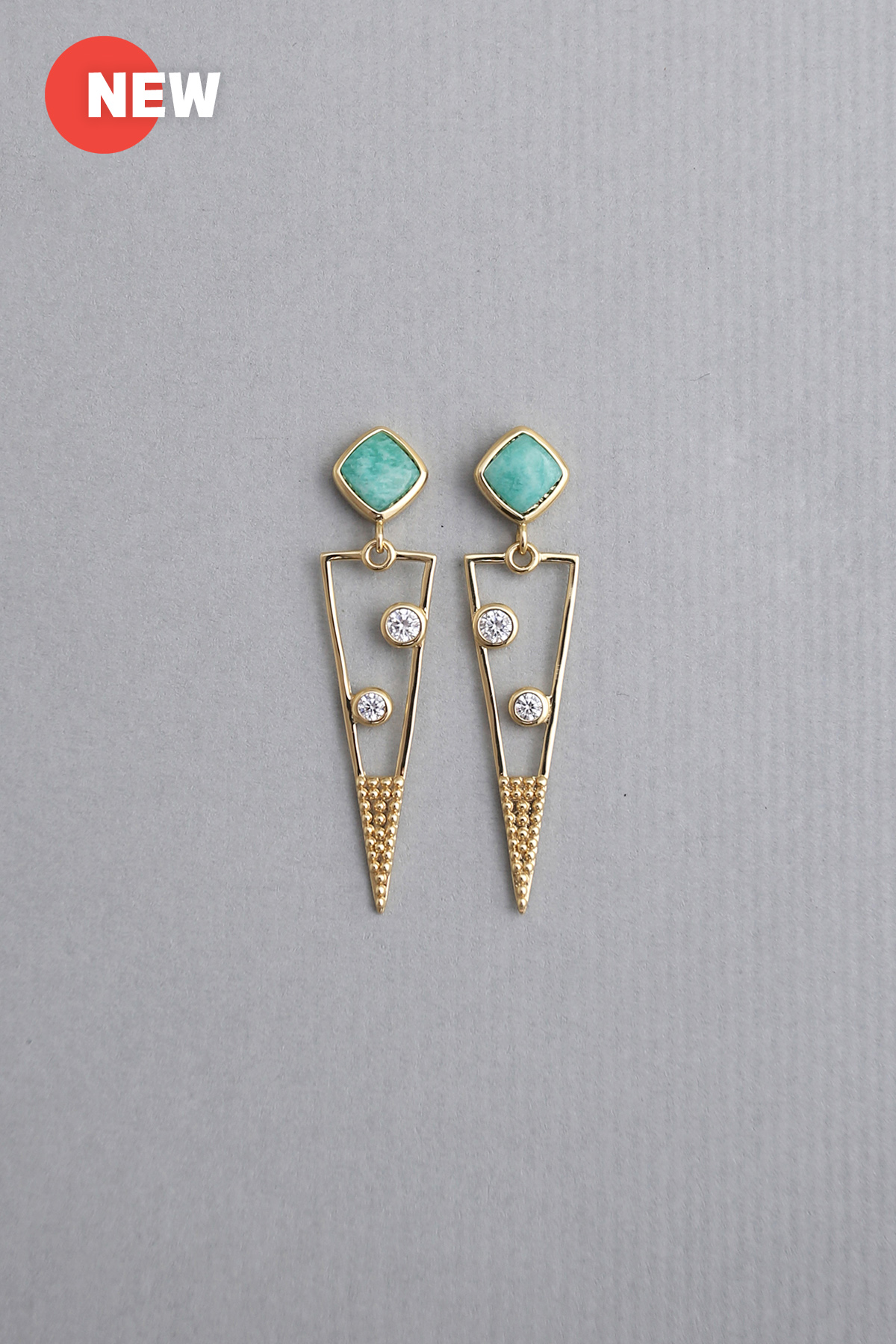 Main stones and sizes : Inlaid stone Amazonite, 6x6 mm cushion