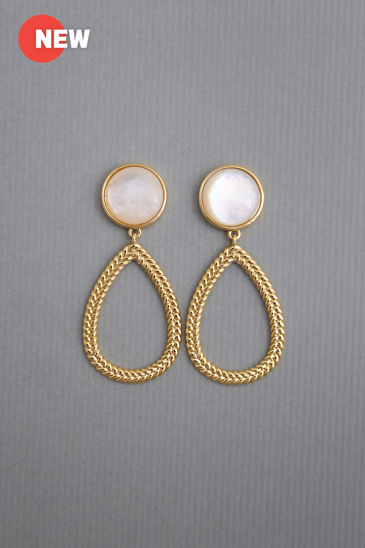 Material : Big teardrop dangle earrings, metal, anti-tarnished, 18K yellow gold plated