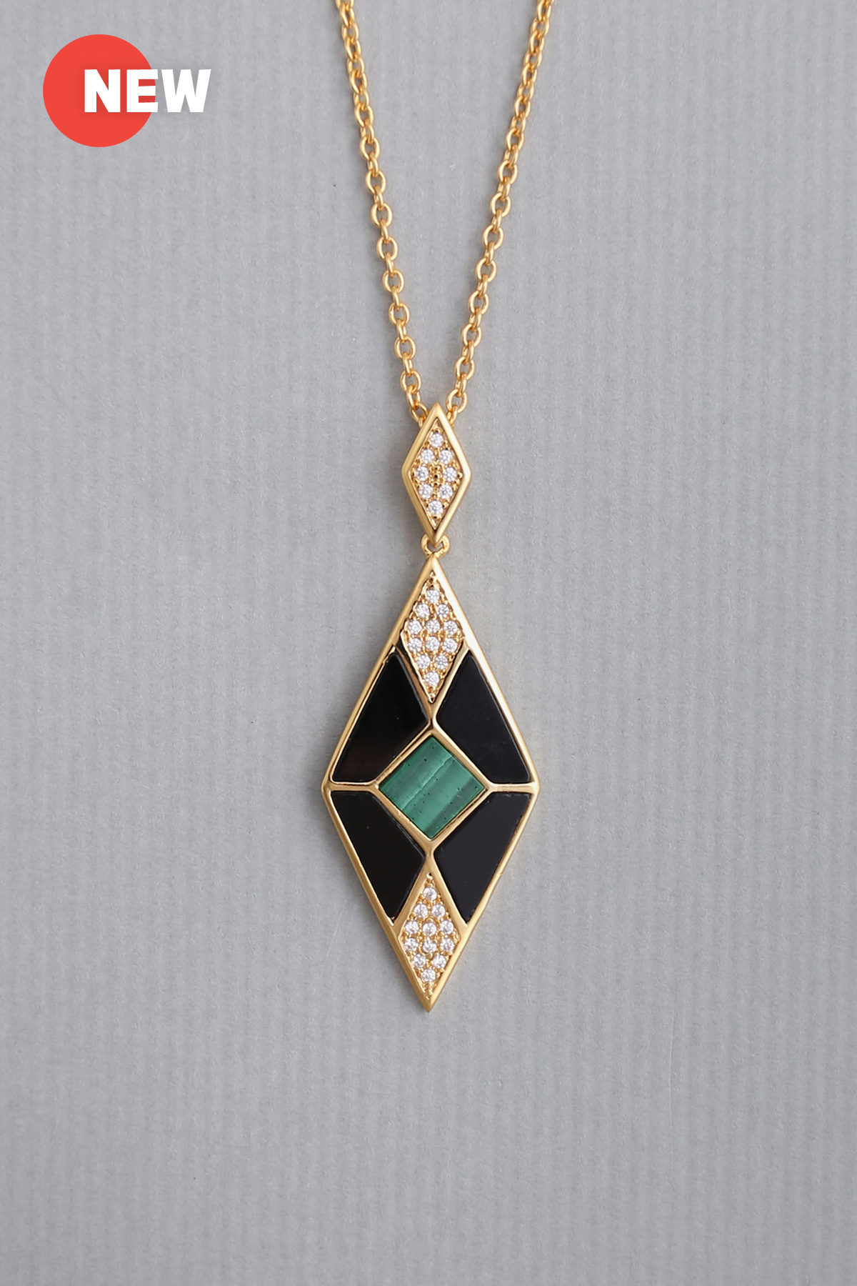 Main stone : Inlaid stone black onyx and malachite, unshaped